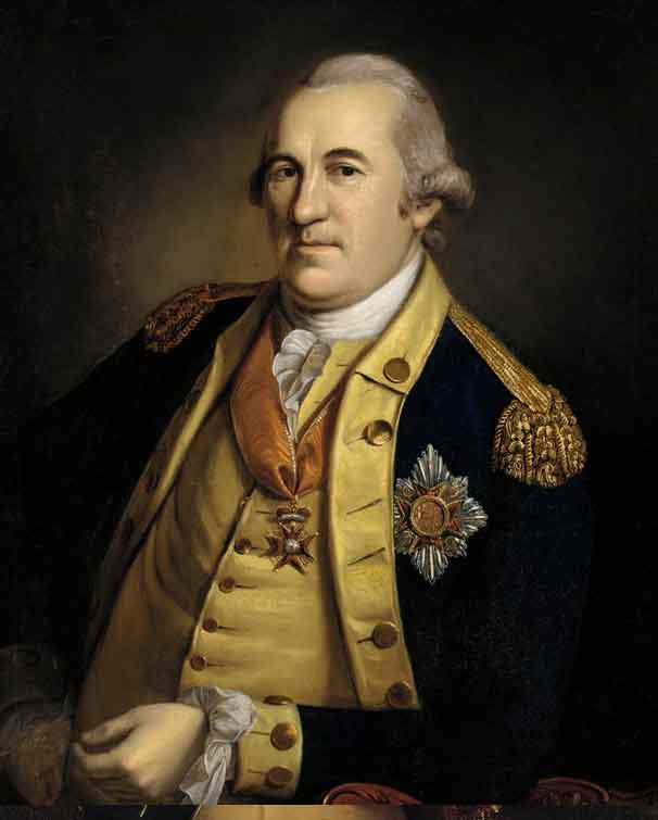 Steuben, Friedrich Wilhelm Ludolf Gerhard Augustin (1730-1794) Prussian General: Born in the Prussian fortress in which his father was an officer of engineers, Steuben joined the Prussian Army at the age of 17, serving as an infantry officer, a corps staff officer, and an aide to Frederick the Great. In 1764, he left the military for political reasons and became chamberlain of a petty German court. He went to Paris and, in 1777, offered his services to Benjamin Franklin, who sent him to America. Steuben had inflated his credentials, however, and his journey to America was perhaps the only thing that would have saved him from debt and obscurity. In 1778, Congress accepted him as a volunteer without rank in the Continental Army, and sent him to Valley Forge. Four months later, he attained the rank of major general, and trained troops with a new system of drill that consisted of European practices modified to American needs. The next year, Congress authorized the publication of Steuben's Regulations for the Order and Discipline of the Troops of the United States, known as the "Blue Book." Although Steuben helped the patriot cause in many ways, his major contribution was increasing the professionalism of the army. After retiring in 1784, he settled in New York.