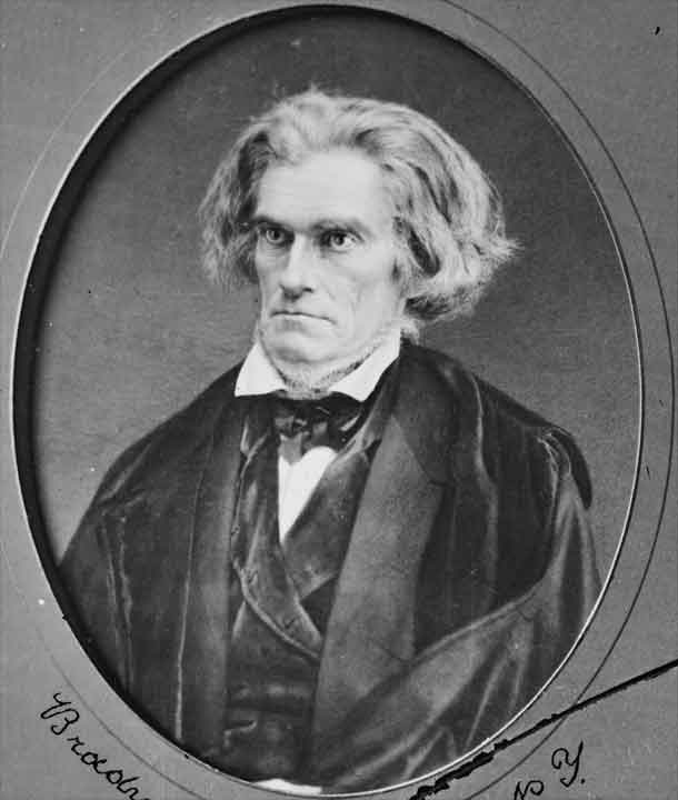 Born in South Carolina of Irish Presbyterian parentage, Calhoun studied at Yale University and became a lawyer. Elected to the US Congress, he supported the War of 1812 (1812-15) and the protective tariff. In 1817, Calhoun became Secretary of War under President Monroe, succeeding in reorganizing the War Department. From 1825 to 1832, he served as Vice President in the administrations of John Quincy Adams and Andrew Jackson. In 1829, Calhoun stated his belief that states had the right to nullify laws they considered unconstitutional. He presented his theory of state rights in his 1831 "Address to the People of South Carolina." When South Carolina passed the Nullification Ordinance in 1832, Calhoun resigned as Vice President and entered the US Senate. There he led the states' rights movement and supported the interests of slave-holding states. He became Secretary of State and, in 1844, signed the treaty annexing Texas. Returning to the Senate, he opposed the war with Mexico (1846-7). Along with Henry Clay and Daniel Webster, Calhoun was part of the "great triumvirate" of American political orators of their period.