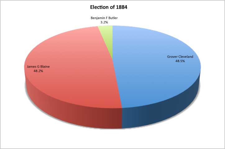 | Connecticut | Grover Cleveland | 67,167 | 48.9 | James Blaine | 65,879 | 48.0 | Benjamin Butler | 1,682 | 1.2 | John St John | 2,493 | 1.8 |