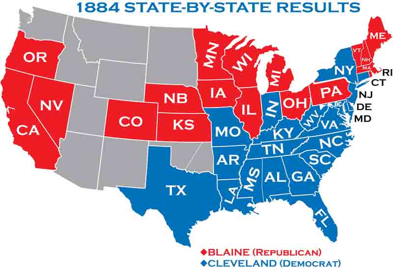 | Nevada | Grover Cleveland | 5,577 | 43.6 | James Blaine | 7,176 | 56.2 | Benjamin Butler | 26 | 0.2 | John St John | - | |