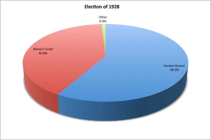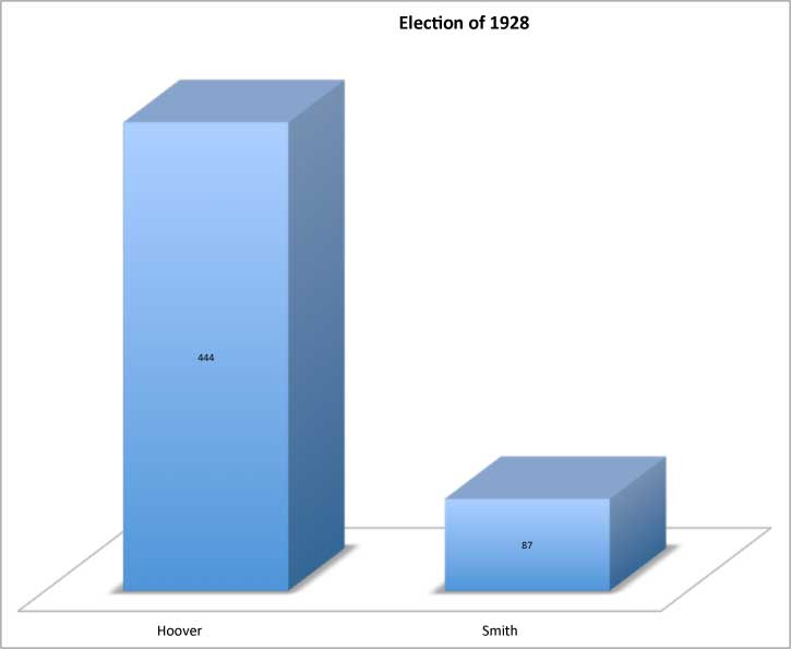 The 1928 campaign was the first in which radio played an important role. While Smith was a better campaigner in person, Hoover presented himself more effectively on the radio. The combination of the continued prosperity, combined with a country that was not yet ready to elect a Catholic President ensured that Hoover went on to an overwhelming victory.