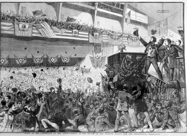 The democratic conventioned opened with four contendors for the nomination. They were Alen G Thurman of Ohio, Thomas A Hendricks of Indiana, Thomas Bayard of Delaware and Grover Cleveland of New York. Cleveland was the governor of New York and the favorite. His reputation as a reformer however made him an enemy of Tammany Hall. They opposed his nomination and tried to engineer the selection fo Thomas Hendricks. Cleveland took and early lead on the ballots and on the fourth balllot, delegates switch their support and put Cleveland over the top.