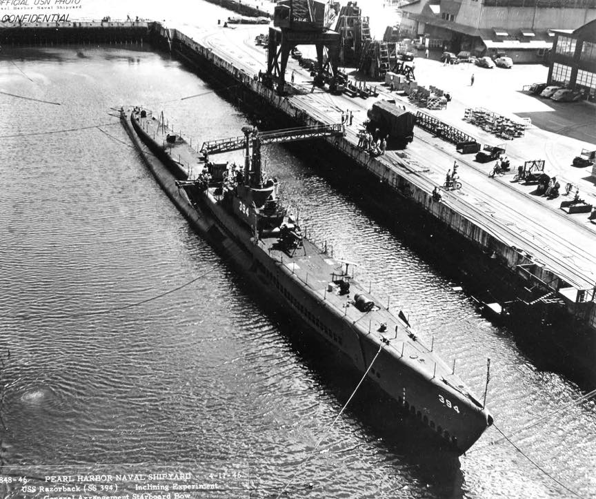Razorback (SS-394) was laid down by the Navy Yard, Portsmouth, N.H., 9 September 1943; launched 27 January 1944; sponsored by Mrs. H. F. D. Davis, and commissioned 3 April 1944, Lt. Comdr. A. M. Bontier in command.