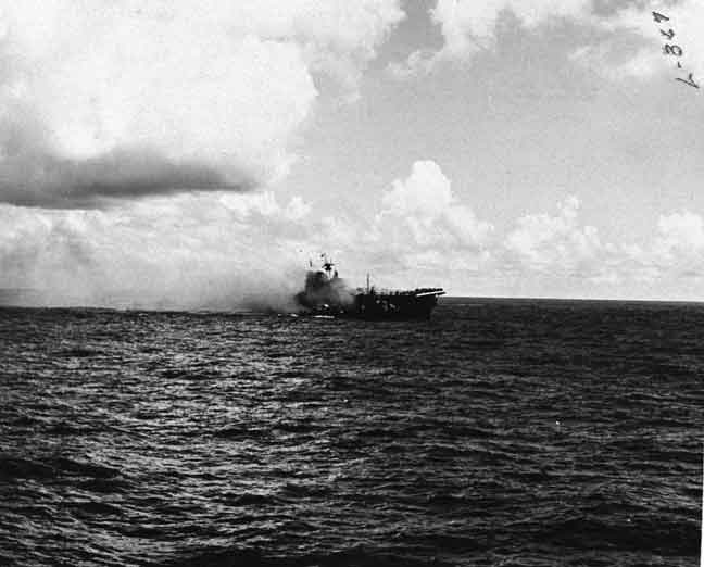 The main American strike force attacked the carrier Shokaku causing serious damage. They also seriously damaged the Japanese heavy cruiser Shokaku.